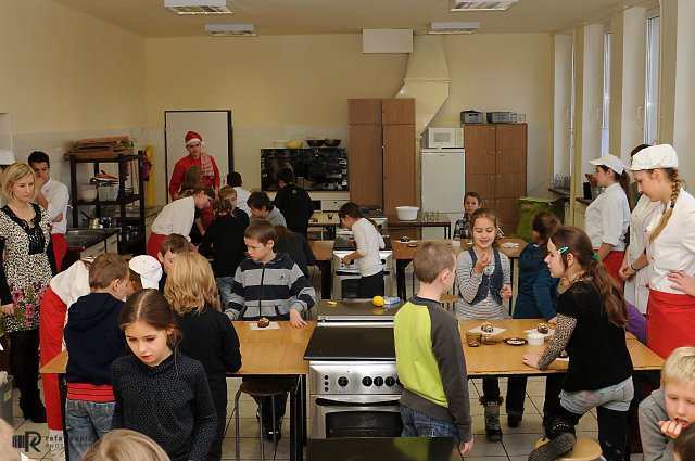 - Zajęcia warsztatowe - dekorowanie świątecznych pierników, spotkanie w sali multimedialnej z uczestnikami projektu; wspólne zabawy i praca dzieci, młodzieży szkoły średniej, nauczycieli i rodziców.